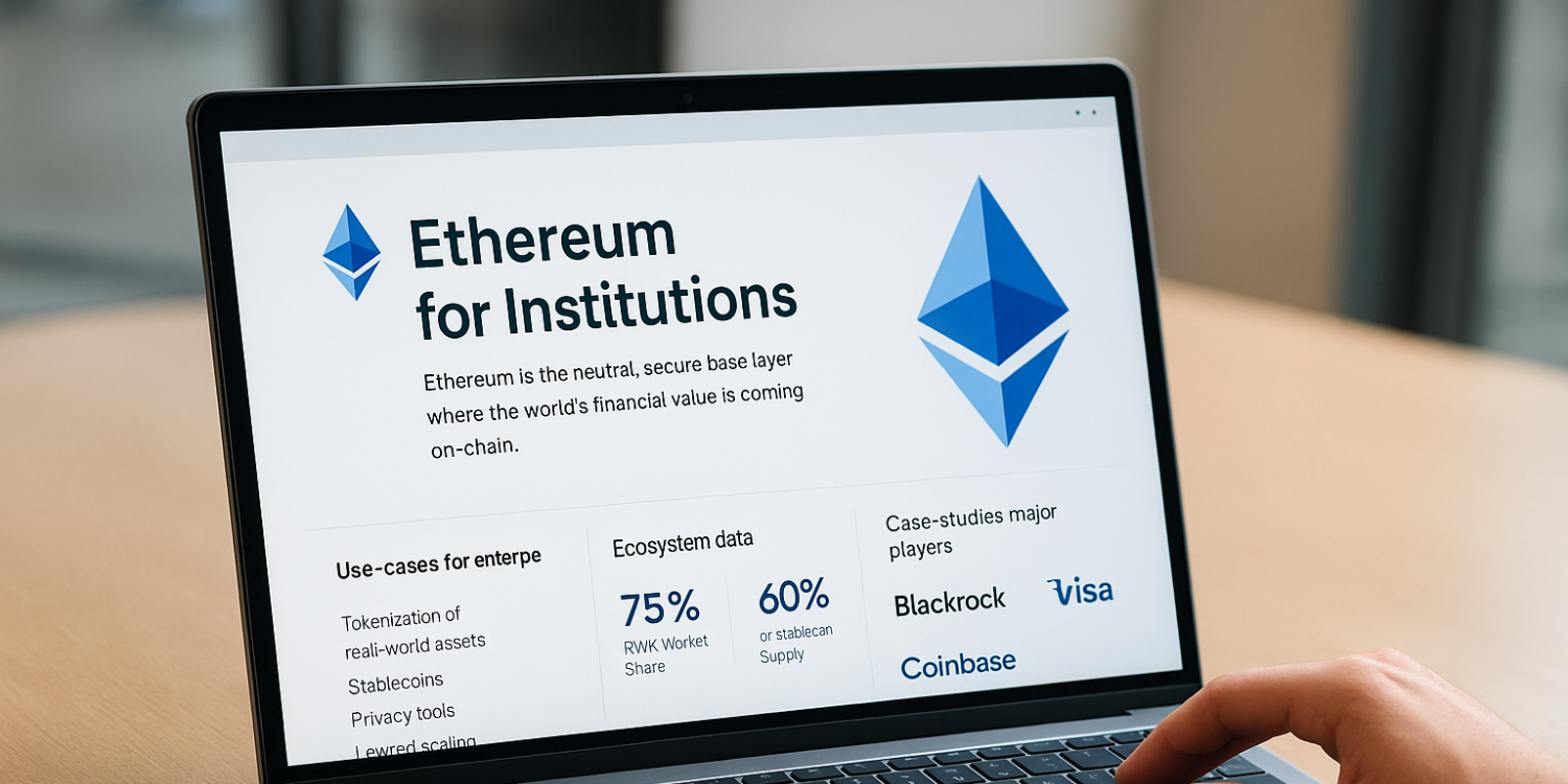 The Ethereum Foundation has just unveiled a brand-new digital gateway aimed squarely at businesses, financial institutions and large-scale enterprises: the website “Ethereum for Institutions” (accessible at institutions.ethereum.org). The platform marks a clear pivot in Ethereum’s evolution: beyond being a developer-centric chain, it is now explicitly positioning itself as the backbone infrastructure for enterprise-grade, global finance.